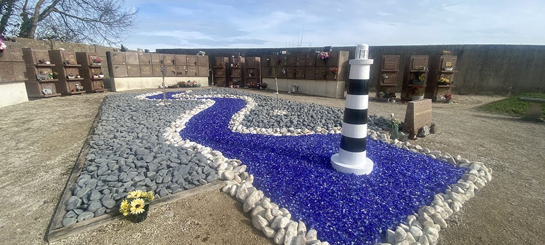 L’espace de dispersion du cimetière s’est transformé en un jardin où le phare veille sur la mémoire.