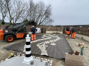 L’espace de dispersion du cimetière s’est transformé en un jardin où le phare veille sur la mémoire.