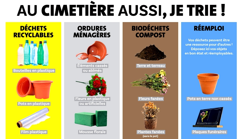 Afin d’améliorer la gestion des déchets et de favoriser le recyclage, la commune a mis en place une nouvelle organisation des points de collecte des déchets au cimetière.