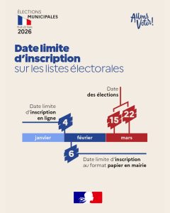 Pour pouvoir voter aux prochaines élections municipales les 15 et 22 mars prochain, il est nécessaire de vous inscrire sur les listes électorales de la commune.