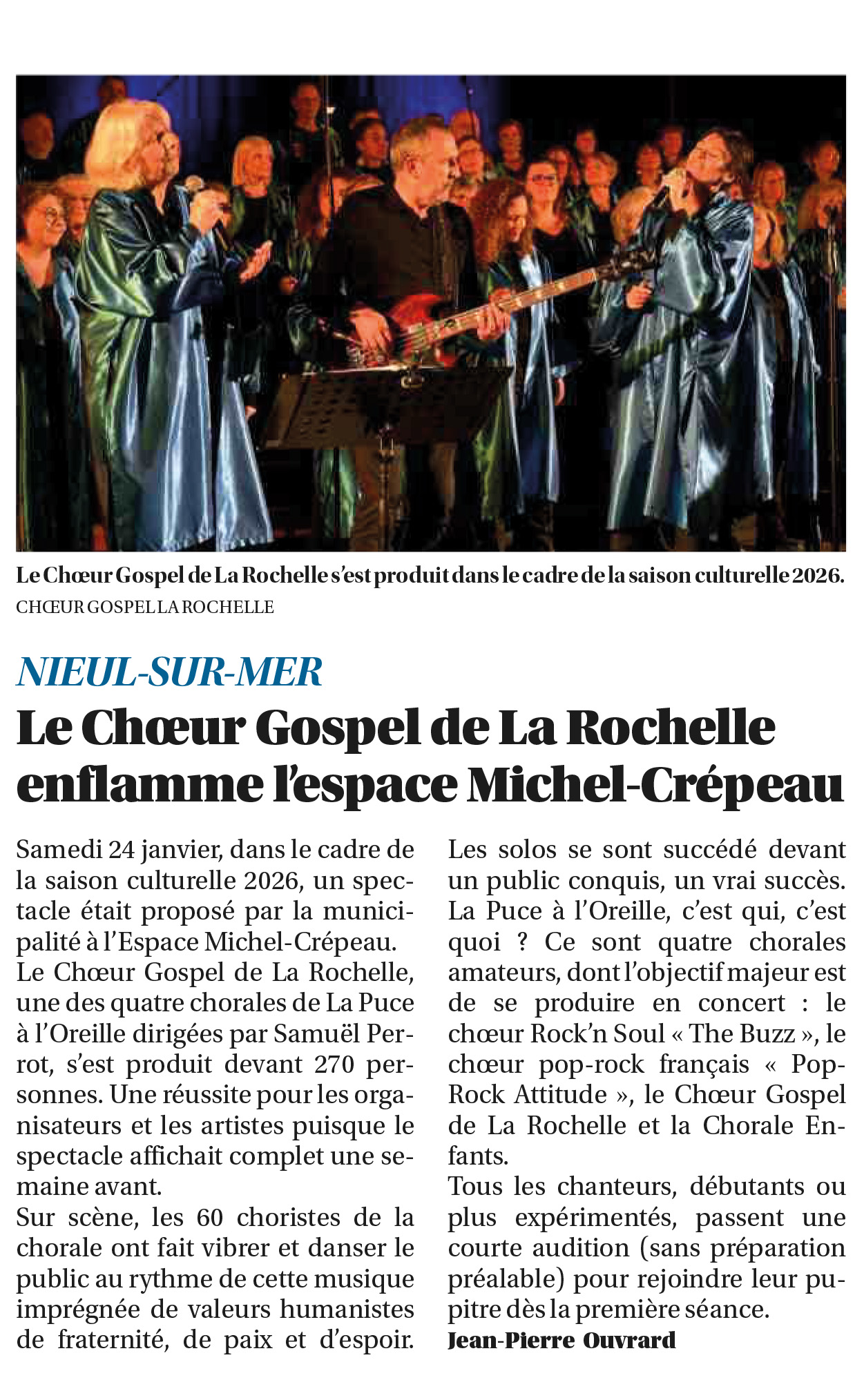 article du 30 janvier : Le Chœur Gospel de La Rochelle enflamme l’Espace Michel Crépeau