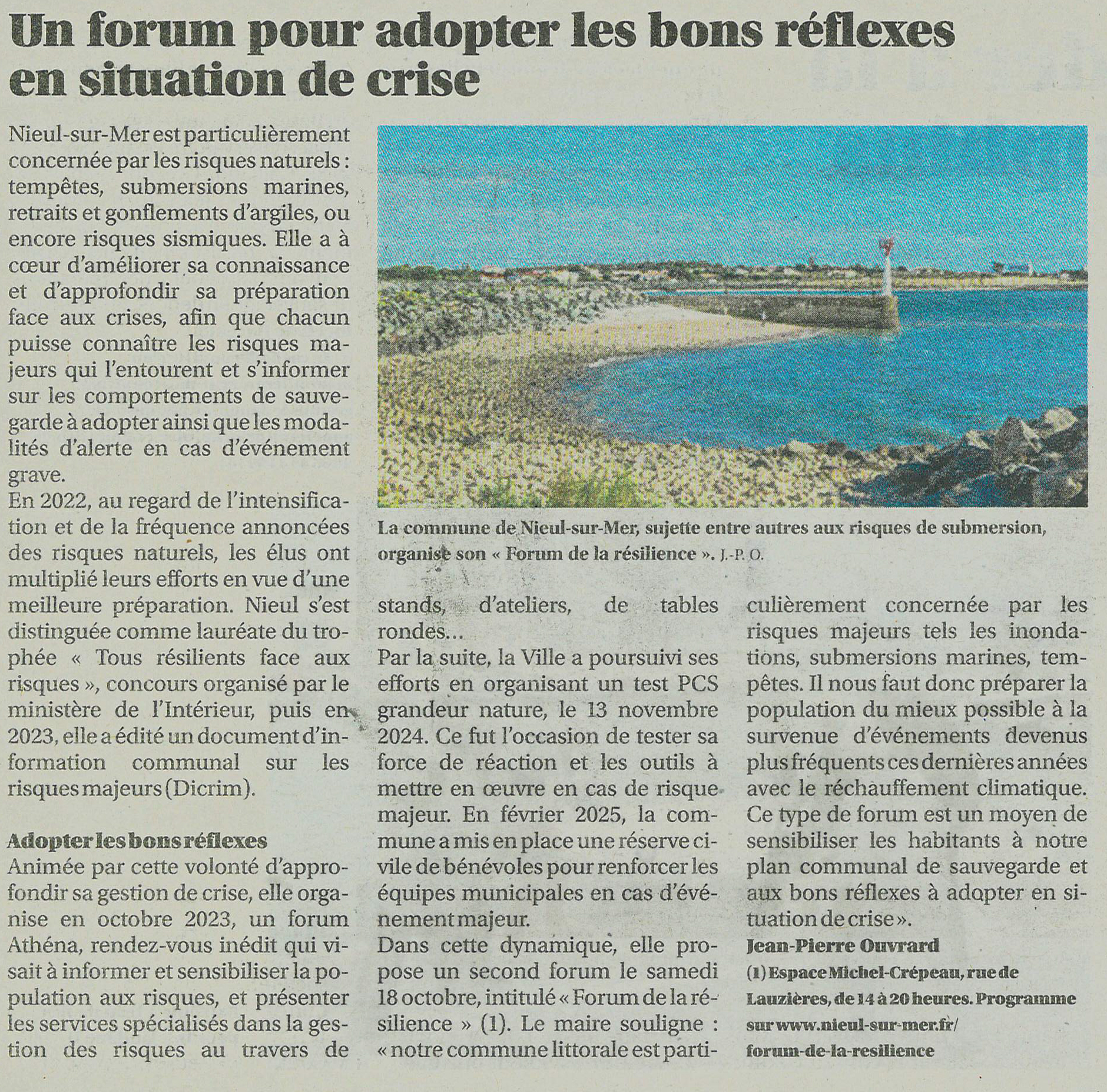 article du 15 octobre : Un forum pour adopter les bons reflexe en situation de crise